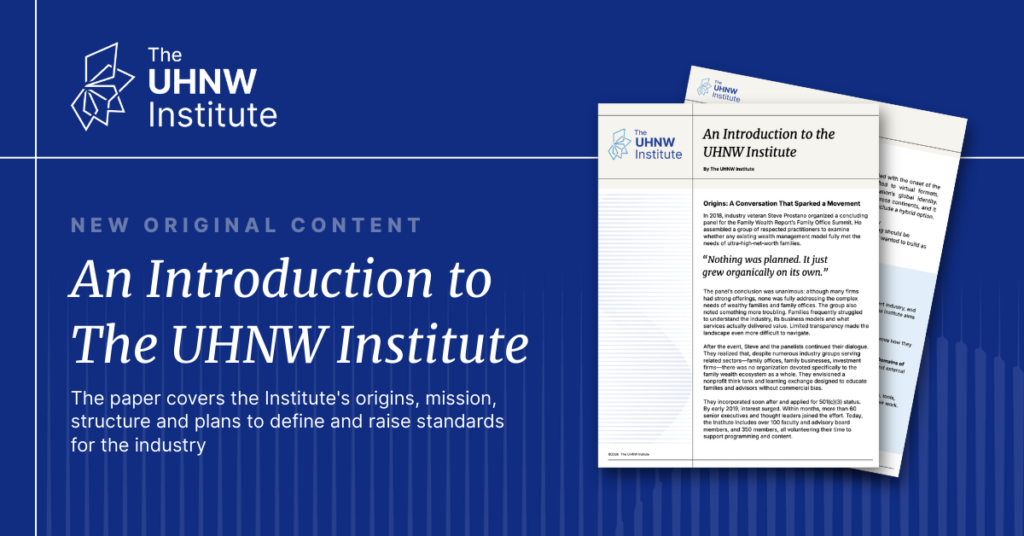 As a nonprofit think tank and learning exchange, The UHNW Institute is elevating the wealth management industry to a new standard so that families and their advisors can foster prosperous and meaningful relationships from one generation to the next.