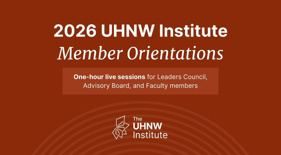 The UHNW Institute will host live member orientations every other month in 2026. These sessions are designed to help members use Institute resources more effectively and stay connected with current programming and initiatives.