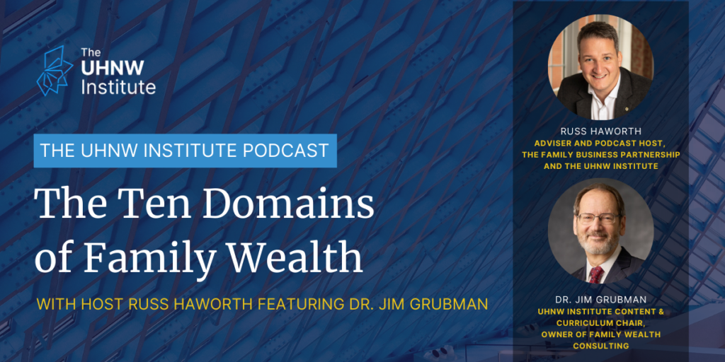 The UHNW Institute Podcast: The Ten Domains of Family Wealth In this insightful episode, host Russ Haworth and guest, Dr. Jim Grubman, UHNW Institute Content & Curriculum Chair and owner of Family Wealth Consulting, explore the Ten Domains of Family Wealth, a model designed to address the complex needs of ultra-high-net-worth families. This taxonomy and hierarchy help families […]