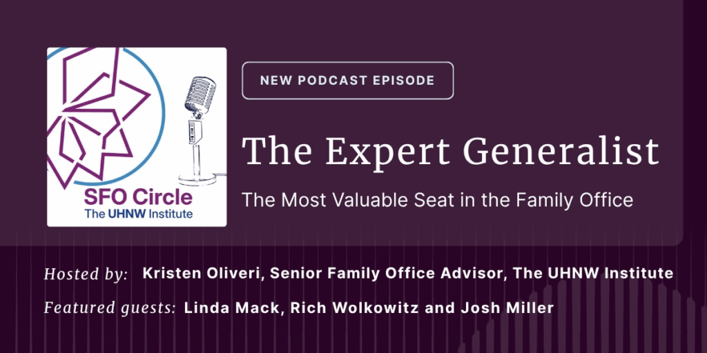 New Podcast Episode: The Expert Generalist: The Most Valuable Seat in the Family Office In the latest episode of the SFO Podcast, host Kristen Oliveri, senior family office advisor at the UHNW Institute, is joined by Linda Mack (Founder and President, Mack International and UHNWI board member), Rich Wolkowitz (Founder Xylogenesis® Family Office Advisory), […]
