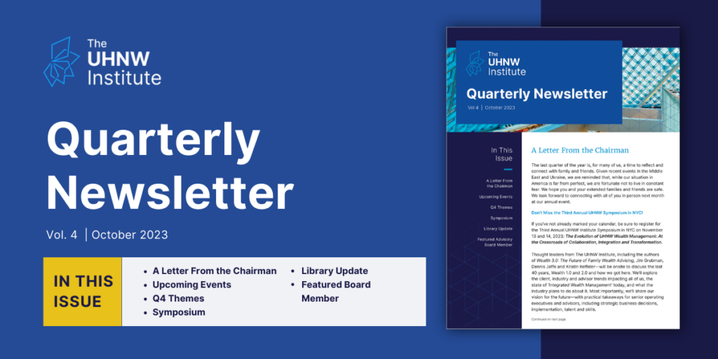 The UHNW Institute’s November Theme: Integrated Wealth Management Every month, The UHNW Institute identifies a new theme to highlight, steering our content and programming. For November, we will explore the theme of Integrated Wealth Management (IWM), the same concept that will guide our 2023 Symposium later this month. Learn more about our upcoming in-person and […]