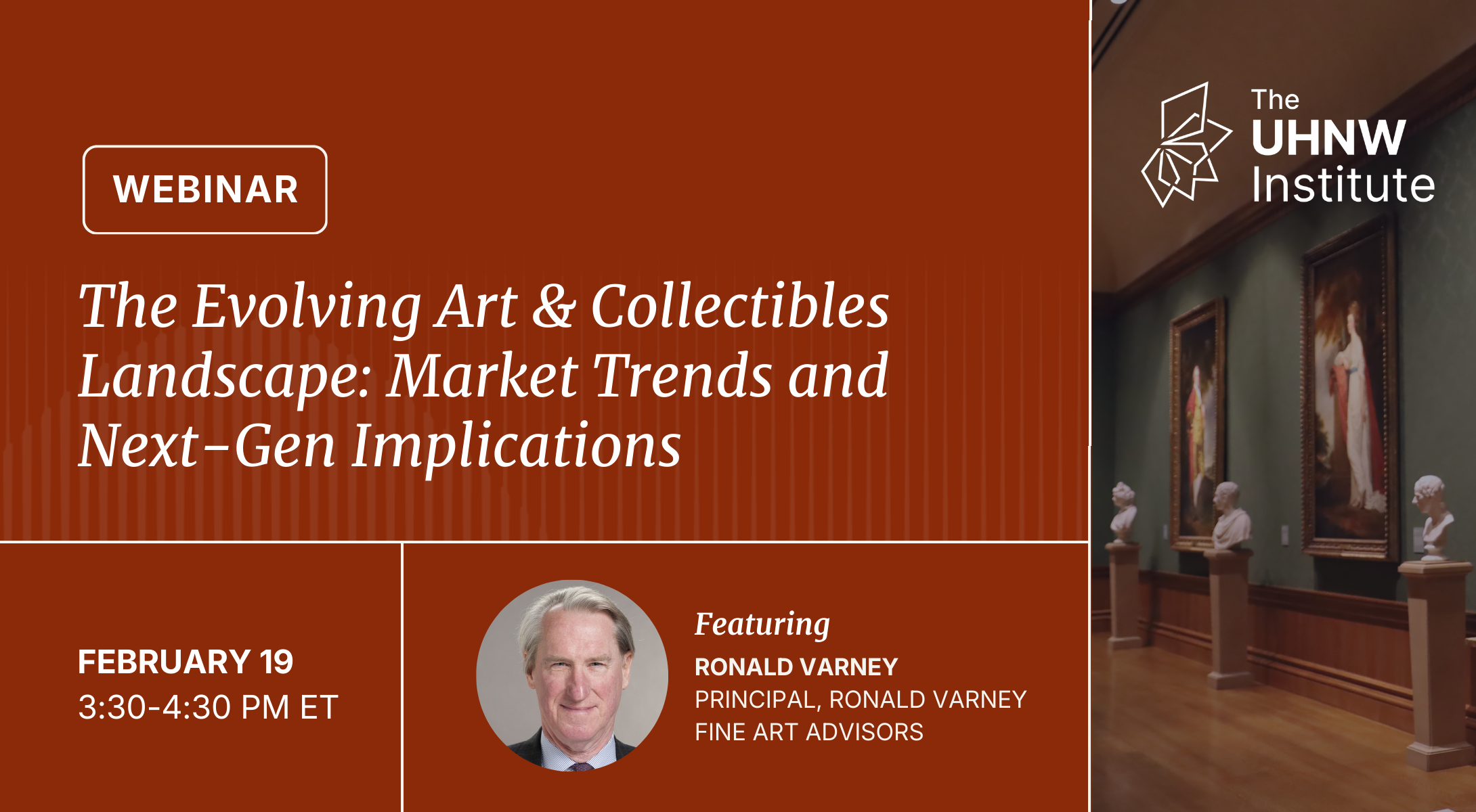 Join The UHNW Institute on February 19 at 3:30-4:30 PM ET for The Evolving Art & Collectibles Landscape: Market Trends and Next-Gen Implications, a conversation with Ronald Varney.