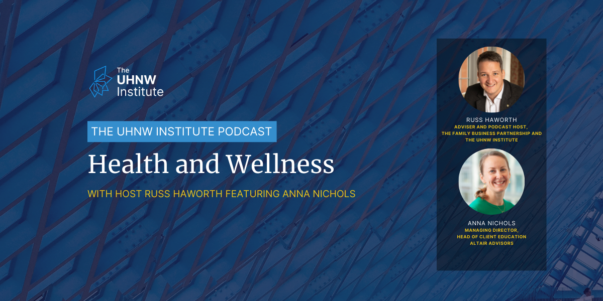 In this episode of The UHNW Institute Podcast, host Russ Haworth is joined by Anna Nichols, Managing Director and Head of Client Education at Altair Advisors and Chair of the Health and Wellness Domain at the Institute. Together, they explore the vital role that health and wellness play in advising ultra-high-net-worth families, especially as it relates to family dynamics, long-term planning and wealth management. Anna, with her background in financial communications and wealth consulting, provides insights into how proactive health planning impacts family relationships and decision-making processes.
