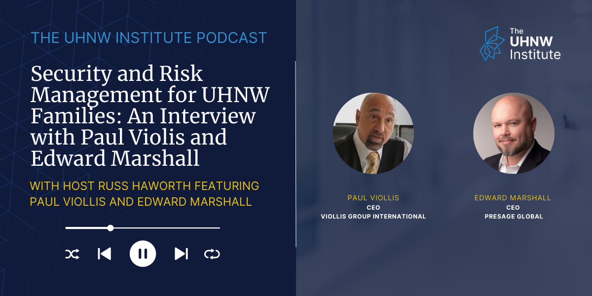 In this episode of The UHNW Institute Podcast, host Russ Haworth speaks with Paul Viollis, CEO at Viollis Group International, and Edward Marshall, CEO at Presage Global, about the security challenges facing ultra-high-net-worth families. Their conversation addresses common misconceptions, growing risks in cyber and physical security and the role of intelligence in risk management.