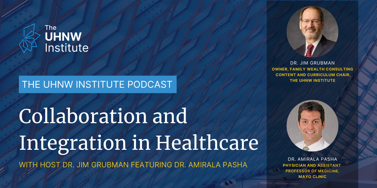 As a follow-up to the sneak-peak debuted at the Symposium, this episode of The UHNW Institute Podcast features the full conversation between Dr. Jim Grubman and Dr. Amirala Pasha as they discuss the differences between collaboration and integration in healthcare, focusing on executive health. They explore the value of long-term relationships, the role of expert generalists and what makes integrators effective.