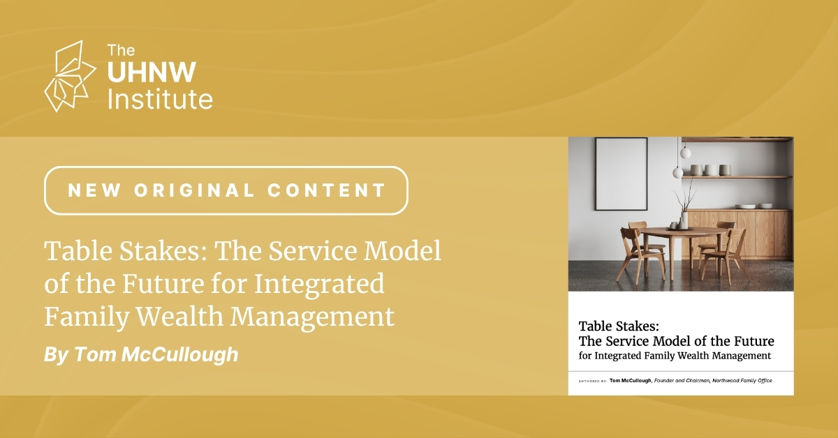 In his new white paper, Institute board of directors member and Northwood Family Office founder and chairman, Tom McCullough, outlines the essential elements of an integrated service model designed to help firms better serve complex, multigenerational families. Built around the Institute’s “four legs of the table” framework, the Firm, Advisor, Services, and Process, the paper provides a practical roadmap for aligning structure, culture, and systems to deliver comprehensive, values-aligned advice.