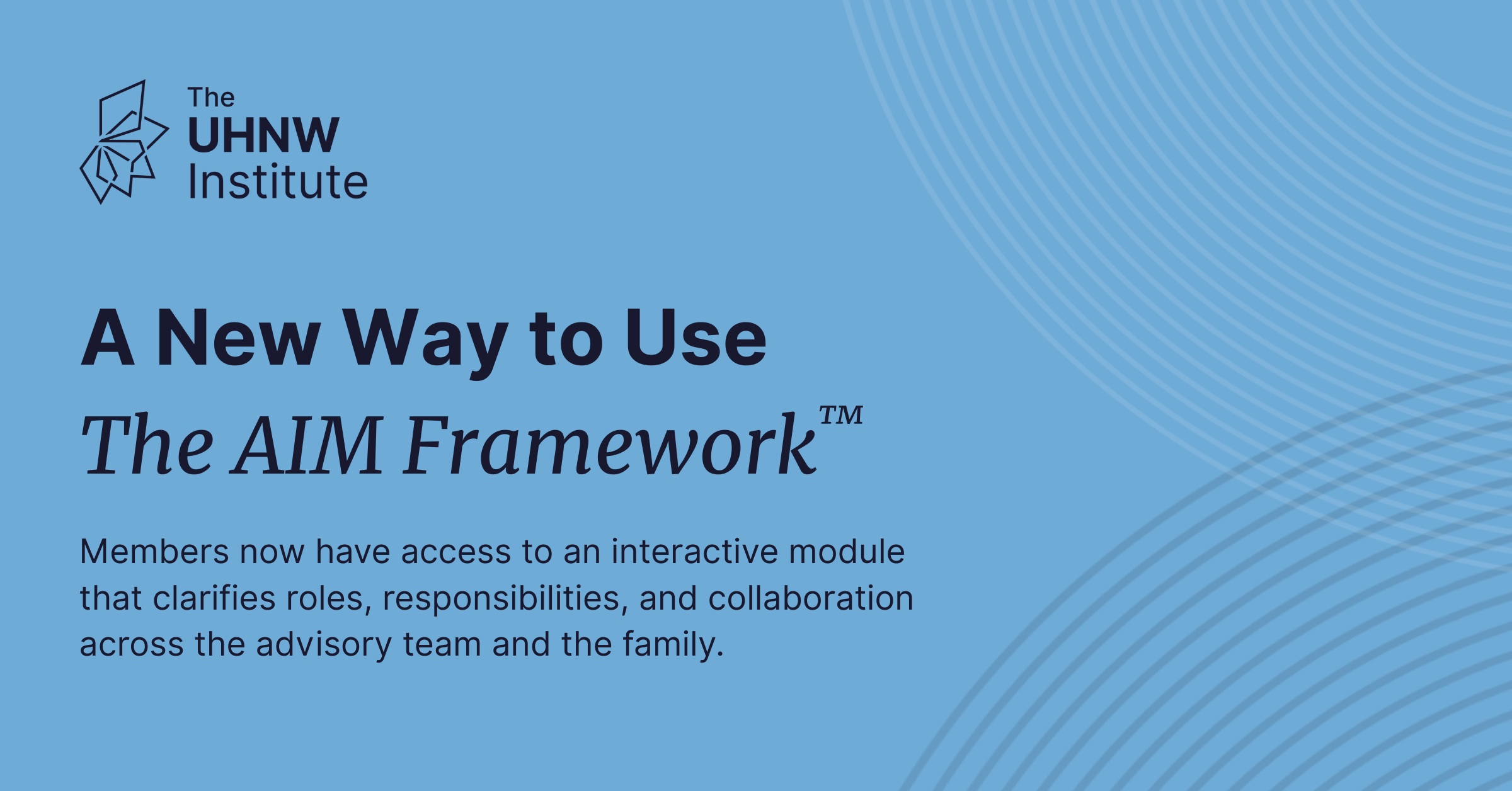The Assessment, Implementation, and Monitoring Framework™ (AIM Framework™) is a groundbreaking new tool that supports the UHNW Institute’s mission of helping UHNW clients, advisors, and firms work more effectively – together. Members now have exclusive access to an AIM Framework™ interactive module.