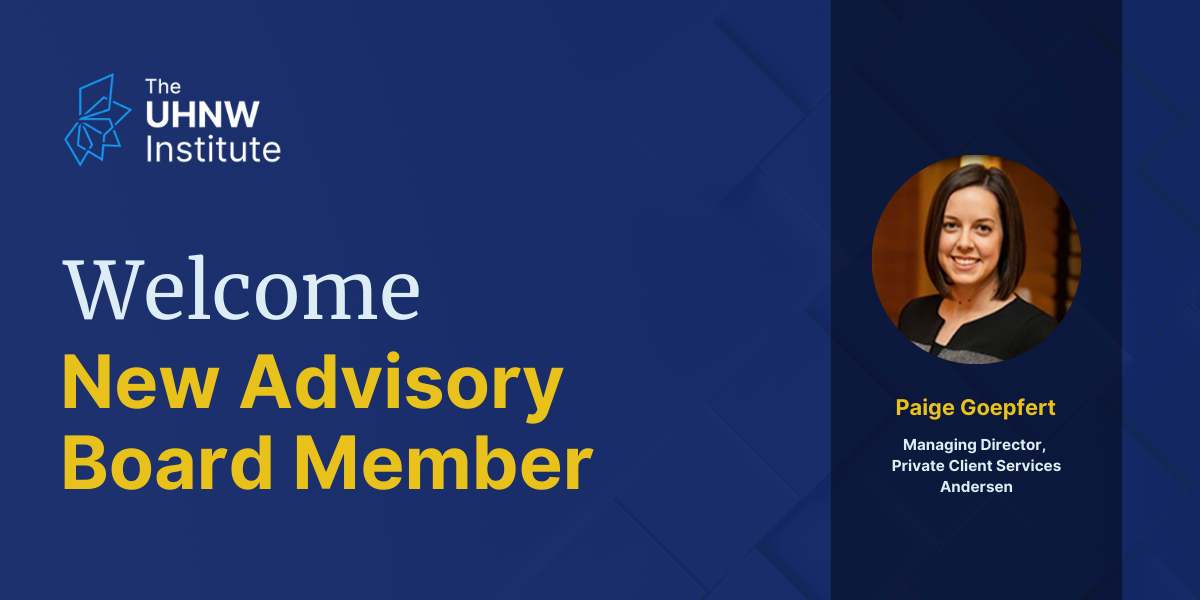 The UHNW Institute is pleased to welcome Managing Director, Private Client Services at Andersen, Paige Goepfert to our Advisory Board.